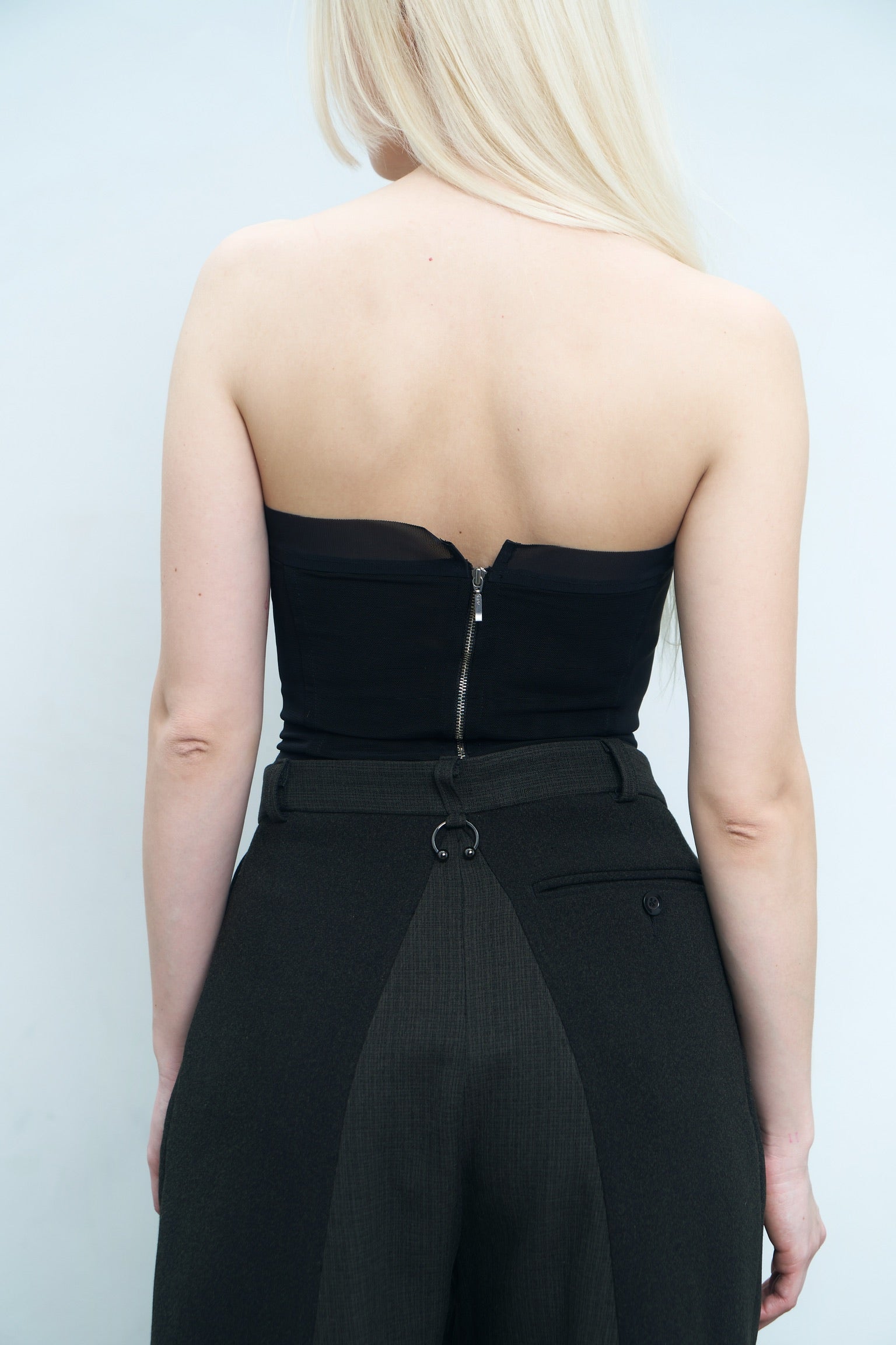 Обʼємні, широкі, з чіткими складками попереду додаючи свободу руху. Задня частина модифікована та доповнена металевим елементом - пірсингом